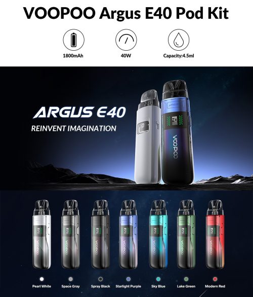 دستگاه پادماد ARGUS E40 کمپانی ووپو از جدیدترین و پیشرفته ترین دستگاه این کمپانی است که دارای ۱۸۰۰ میلی امپر باتری داخلی ، ۴۰ وات میزان خروجی و با طراحی کارتریج های جدید که بهترین طعم رسانی را دارند به بازار عرضه شده است.